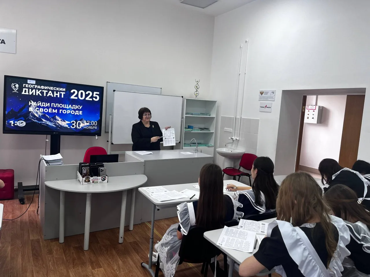 Ежегодно с 2015 года во всех субъектах Российской Федерации и зарубежных странах Русским географическим обществом по инициативе Председателя Попечительского Совета Русского географического общества, Президента РФ В.В.Путина проводится Географический диктант. Участие в Диктанте – это не только проверка географических знаний, но и стремление познать историю страны, её просторы, людей и традиции, а также повышение интереса к науке и национальному наследию. В этом году проходит одиннадцатая международная просветительская акция "Географический диктант 2025" и наша школа впервые стала площадкой для проведения этого мероприятия. 30 ноября 2025 года учащиеся 10,11 классов проверили свои знания в области одной из самых интересных наук – географии.